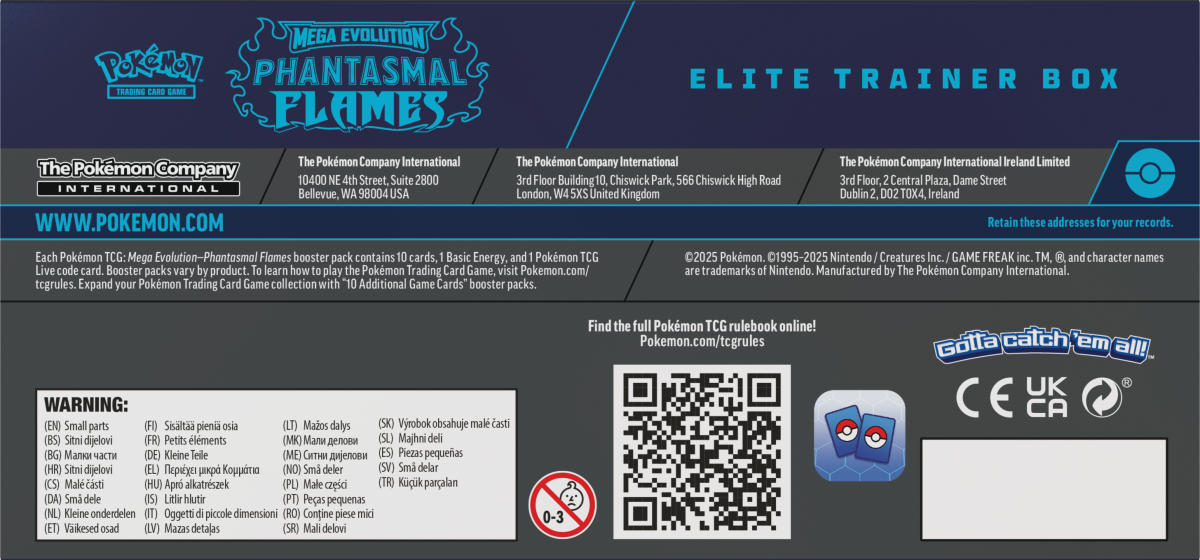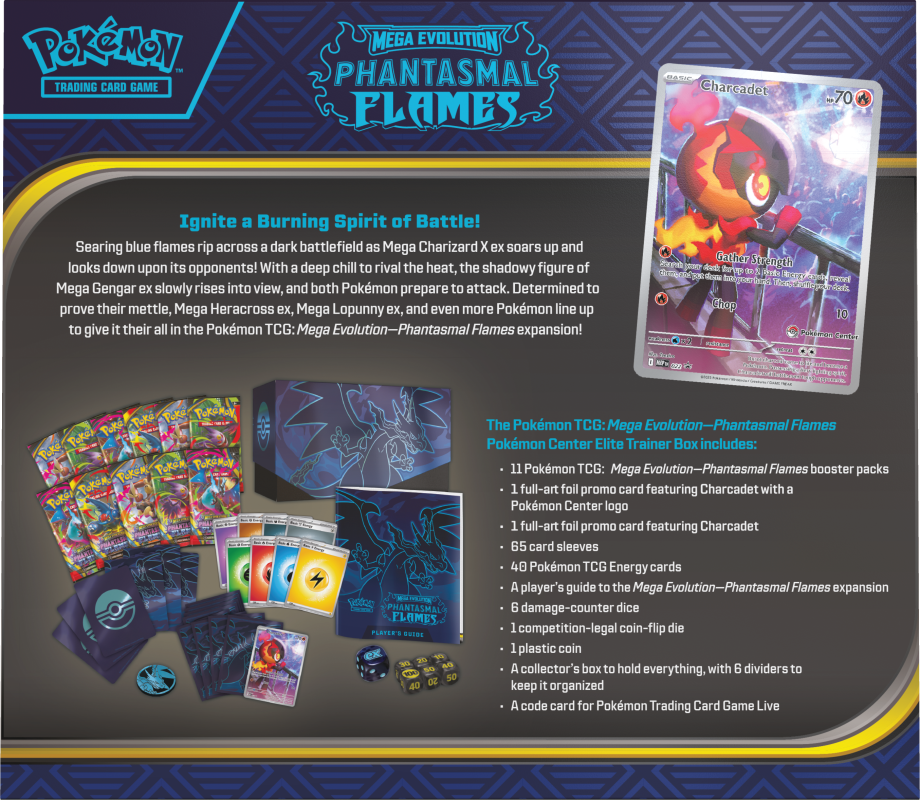 Power up your collection with the Pokémon TCG Mega Evolution – Phantasmal Flames Elite Trainer Box. Includes 9 booster packs & collector accessories.