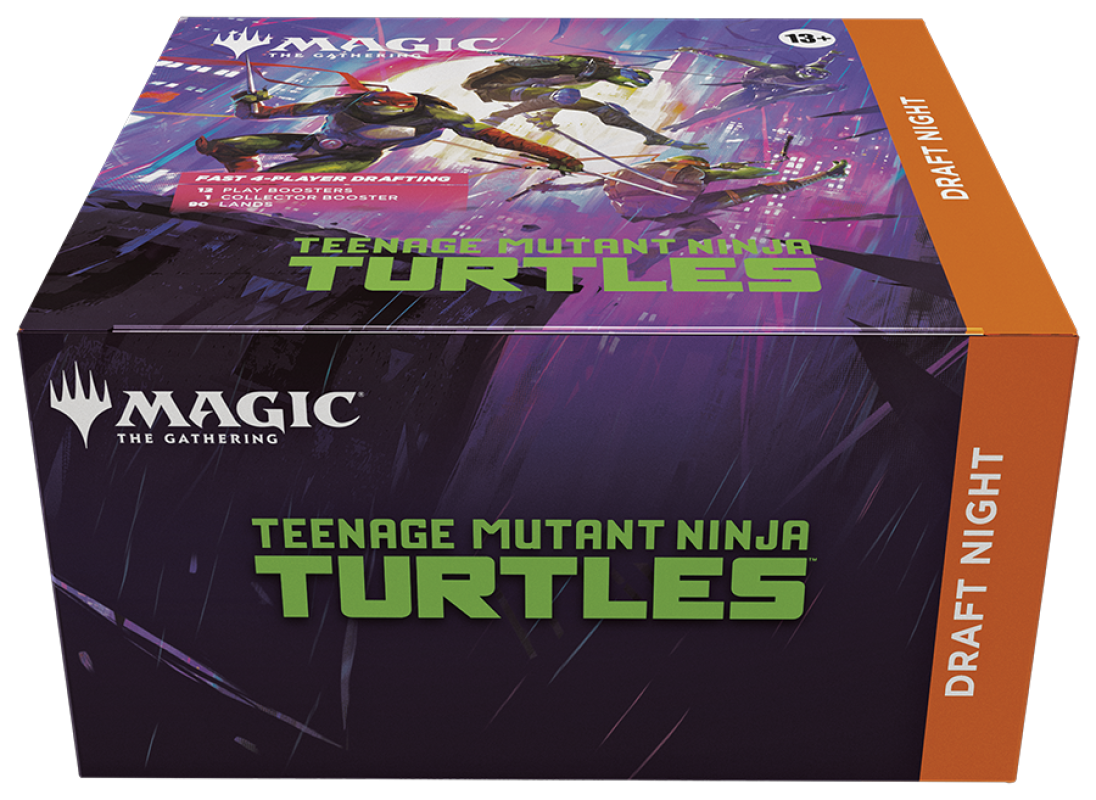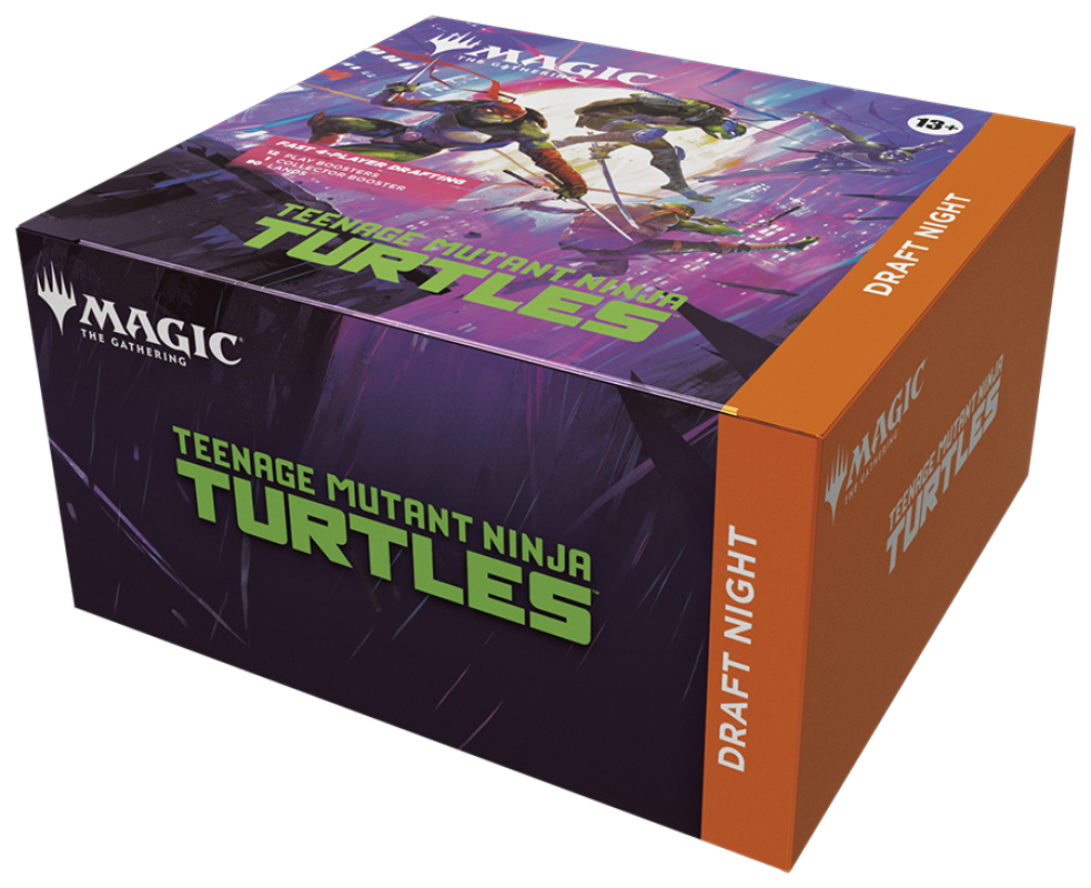 It's a draft party in a box! Draft Night is the self-contained kit for hosting a Pick-Two Draft for four players. Pick-Two encourages fast, dynamic drafting that's great for kitchen-table play or adding a dash of variety to game night! Crown the winner with the packed-in Magic: The Gathering® | Teenage Mutant Ninja Turtles Collector Booster (or you can keep it for yourself—we won't judge). Just add pizza and you have the perfect night with friends!